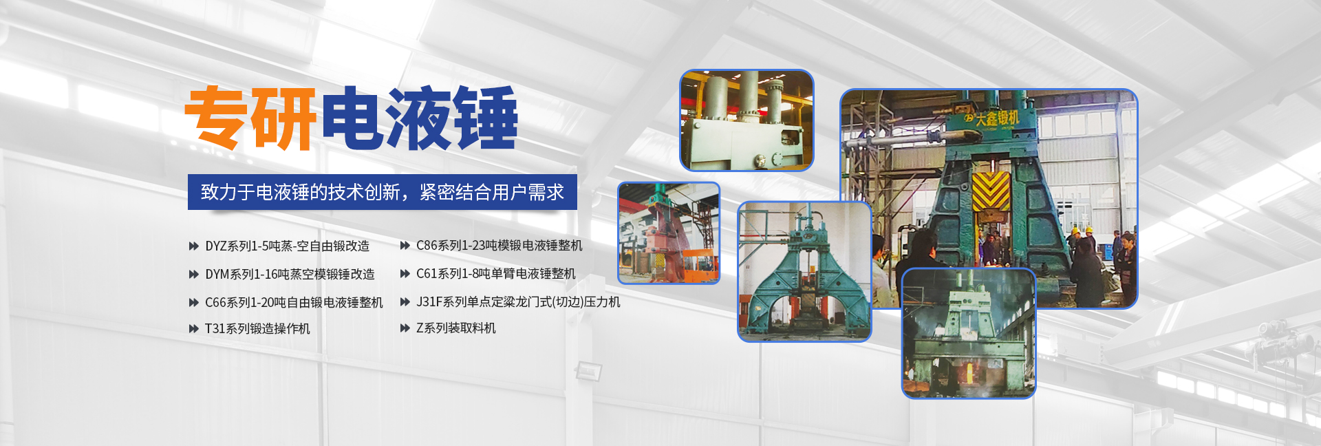 安陽市大鑫重機環(huán)保設備有限公司(原福士德),是一家專注研發(fā)生產電液錘的高技術企業,隸屬安陽市殷都區企業,企業創(chuàng)辦人研制電液錘已有二十多年歷史,積累了豐富的經驗和技術,使產品技術始終處于國內水平,并已生產銷售近百臺電液錘,受到用戶廣泛好評。企業座落在享有“鍛錘之鄉”的安陽市殷都區——安姚路東段。廠區占地面積20畝,車間建筑面積3000多平萬米。企業現有正式員工177人,其中工程師3人,工程師及以下職稱工程技術人員19人。企業設有“六部四車間(公司)”,即銷售部、管理部、技術部、質保部、制造部、工程部、財務部;鉚焊車間、機加工分公司(輝縣市億豐重工有限公司)、裝配車間。擁有主要加工和檢測設備二十多臺(套)。企業主導產品為系列電液錘及輔機:DYZ系列1-5噸蒸-空自由鍛改造DYM系列1-16噸蒸空模鍛錘改造C66系列1-20噸自由鍛電液錘整機C86系列1-23噸模鍛電液錘整機C61系列1-8噸單臂電液錘整機J31F系列單點定粱龍門式(切邊)壓力機T31系列鍛造操作機Z系列裝取料機產品“單一”的企業特點凸顯企業“專注”電液錘研發(fā)的顯著特色。這一特點是基于企業自身情況下的企業頂層設計理念;規(guī)模定位“中而強”,技術瞄準“特而新”,產品必須“專而精”。技術創(chuàng)新是企業發(fā)展的導向。多年來,企業始終專注于電液錘的技術創(chuàng)新,緊密結合用戶意見和要求,不斷升級產品技術水平,例如,對系統進行全方位優(yōu)化設計,進一步提高設備節(jié)能效果;對系統主要性能參數進行數顯改造升級,提高設備的可操作性;對“氣-液”系統進行優(yōu)化設計,使錘能夠發(fā)揮打擊能量;對“專用閥”系統進行優(yōu)化設計,降低液阻,提高操作靈活性;對“錘桿密封”系統進行“巧妙”設計并選用進口密封件,大幅度提高密封壽命……質量保證是企業的生命。技術創(chuàng)新為產品質量保證打下堅實的基礎。同時企業始終貫徹“ISO9001:2000質量管理體系“的“大質量”觀念,各部門以“質量程序文件”為指導,齊抓共管。用每個人的工作質量,來保證過硬的產品質量。質檢部門實行“工序道道必檢,零部件件件必檢”的工作原則,既不能讓不合格零部件流入下工序,更不能讓不合格件出廠。采購部門實行“貨比三家,價高必須優(yōu)質”的原則,嚴格保證外購件具有高的“性價比”。質量檢驗的“原始記錄”為每個零部件建立了檔案,保證產品質量的“可追溯性”。用戶服務是企業的良心。我們把“急用戶之所急,想用戶之所想”當做企業的良心來以一貫之。用“換位思考”(假如我是用戶)的理念替用戶著想,并做到“及時、高 效、全 面”地為用戶服務,確保“顧客滿意率達到95%以上。正所謂“金獎銀獎,不如用戶夸獎”。胸懷《道德經》,“大鑫”行天下。企業一貫堅持“文化興企”的管理理念,蓄他人之長,集團隊智慧,以超前的思維,不斷賦予企業文化新的內涵。在國家工商總局注冊的“大鑫”牌商標,賦予其深刻的文化內涵(大信問天,大道致遠;錘煉金典團隊,鑄金質品牌,健步金光大道。),為自己的產品和服務打上了誠信的印記,走出了一條“用文化品牌戰(zhàn)略,企業不斷發(fā)展狀大”的成功之路。安陽市當屬歷史文化名城,七大古都之首,殷商文化發(fā)源地。旅游景點精彩呈現:殷墟博物院、中國文字博物館、曹操高陵、袁世凱陵、岳飛廟、馬氏莊園、紅旗渠、太行大峽谷……安陽市位于河南省北部,是京廣鐵路、京珠高鐵、京珠高速、107國道的經由城市。南距鄭州機場200公里,北距邯鄲機場40公里。交通十分便捷。熱忱歡迎新老用戶蒞臨我公司考察指導!